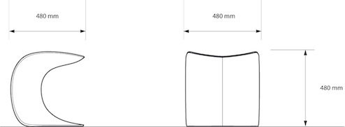 The Leaf Stool stands approximately 480 mm tall by 480 mm wide by 480 mm deep.