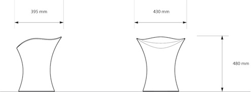 It stands approximately 480 mm tall by 430 mm wide by 395 mm deep.