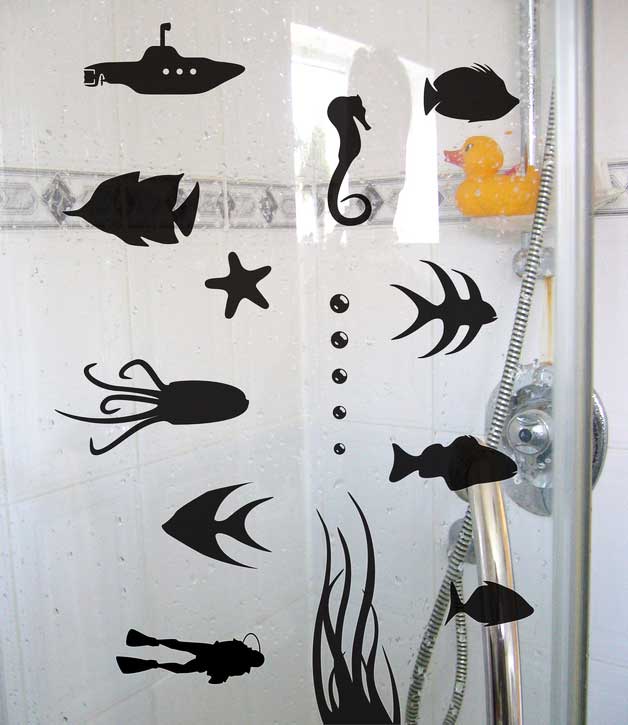 Coloured Fish, an octopus, a diver and a submarine sticker to bring fun to your bath or shower room